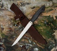 Филейный нож из нержавеющей стали VG-10, рукоять - микарта, кожаный чехол идет в комплекте