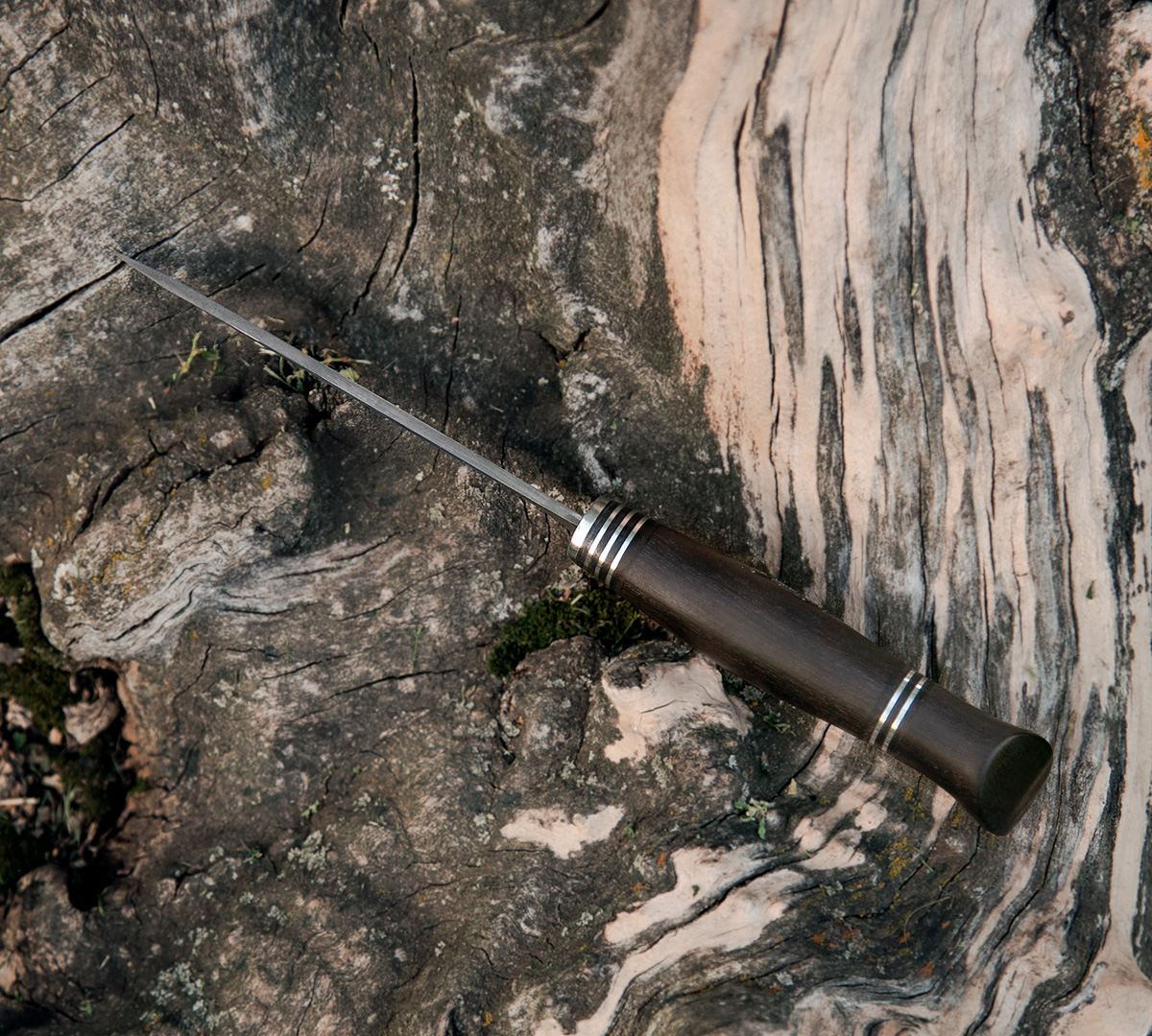 Финка НКВД из булатной стали, рукоять - черный граб, кожаный чехол идет в комплекте.
