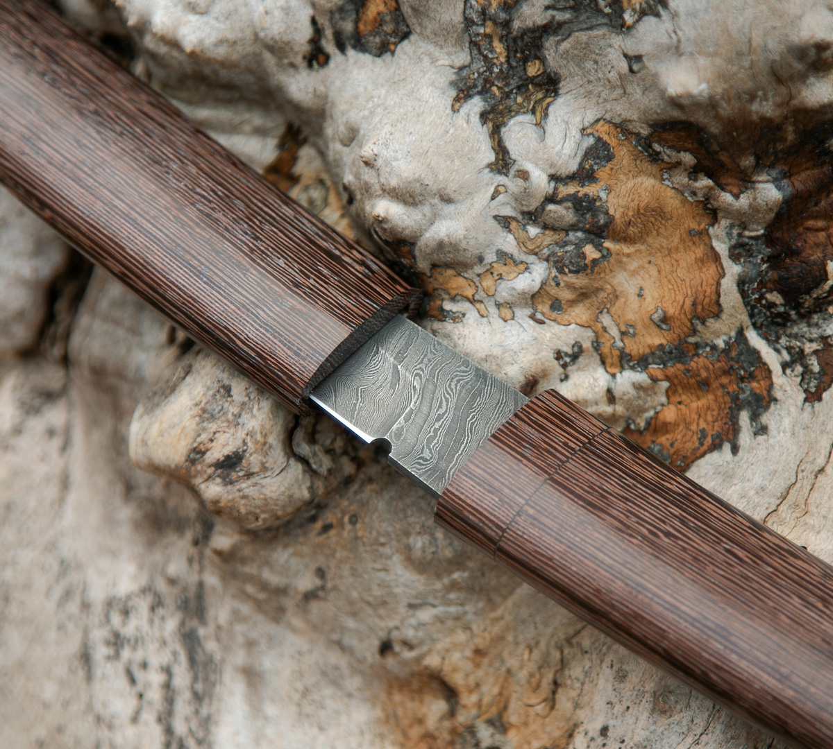 Нож Танто из дамасской стали в деревянных ножнах, рукоять и ножны - венге.
