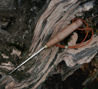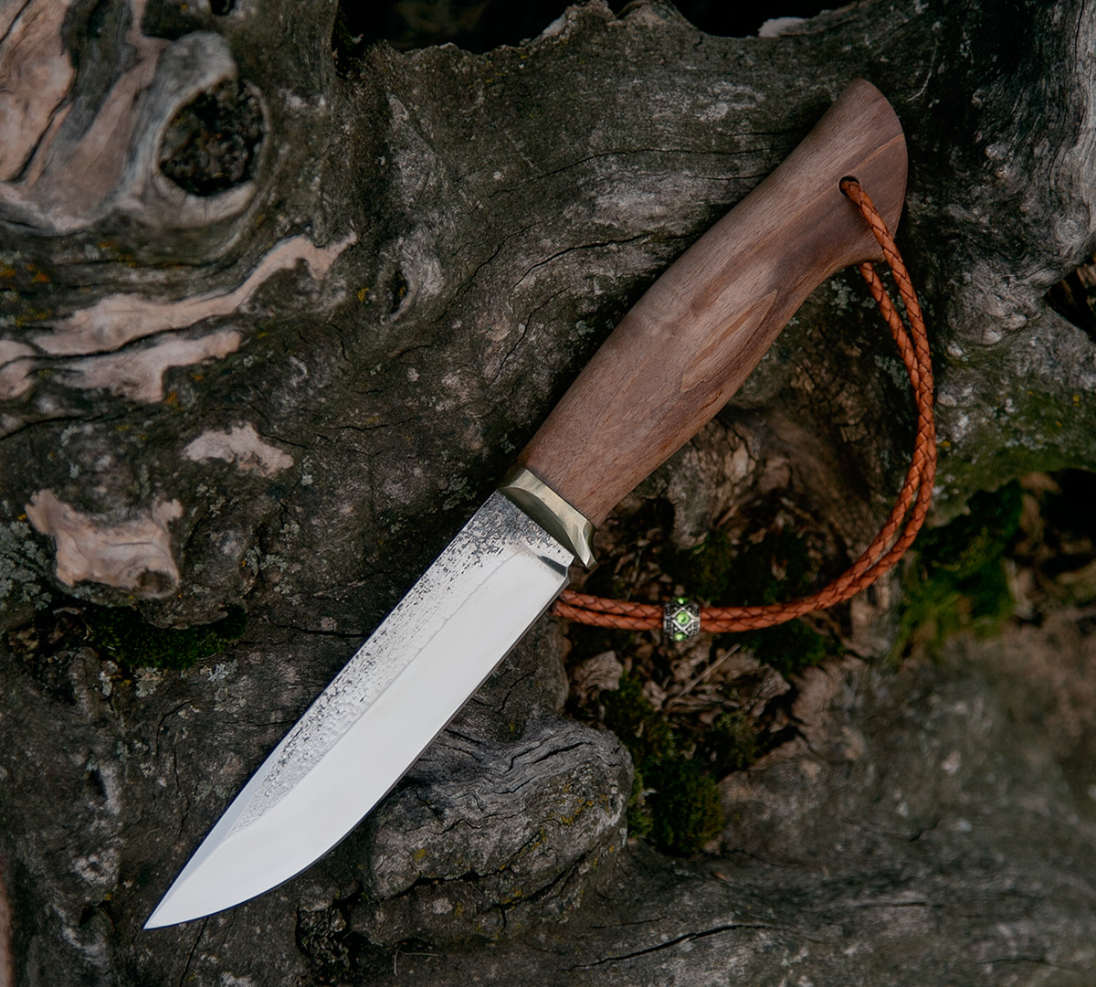 Нож Ладья из кованой нержавеющей стали 110Х18, рукоять - стабилизированная карельская береза, кожаный чехол и темляк идут в комплекте.